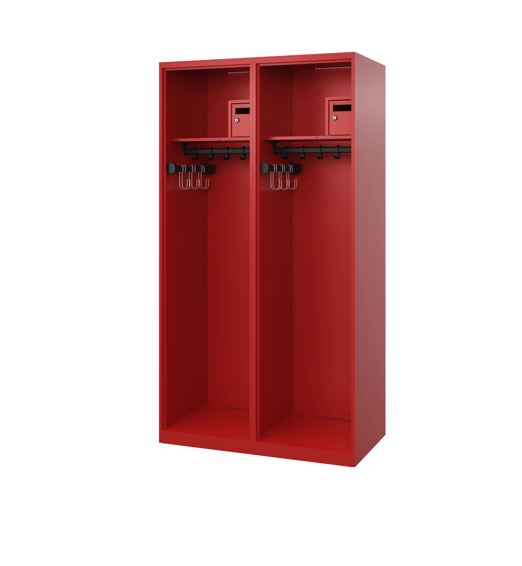 Durchdachte Belüftungslösungen unterstützen das Trocknen der Einsatzkleidung und tragen zur Hygiene bei. Abschließbare Fächer sorgen für den Schutz persönlicher Gegenstände und erfüllen die Anforderungen an Sicherheit und Ordnung in Einsatzgebäuden.